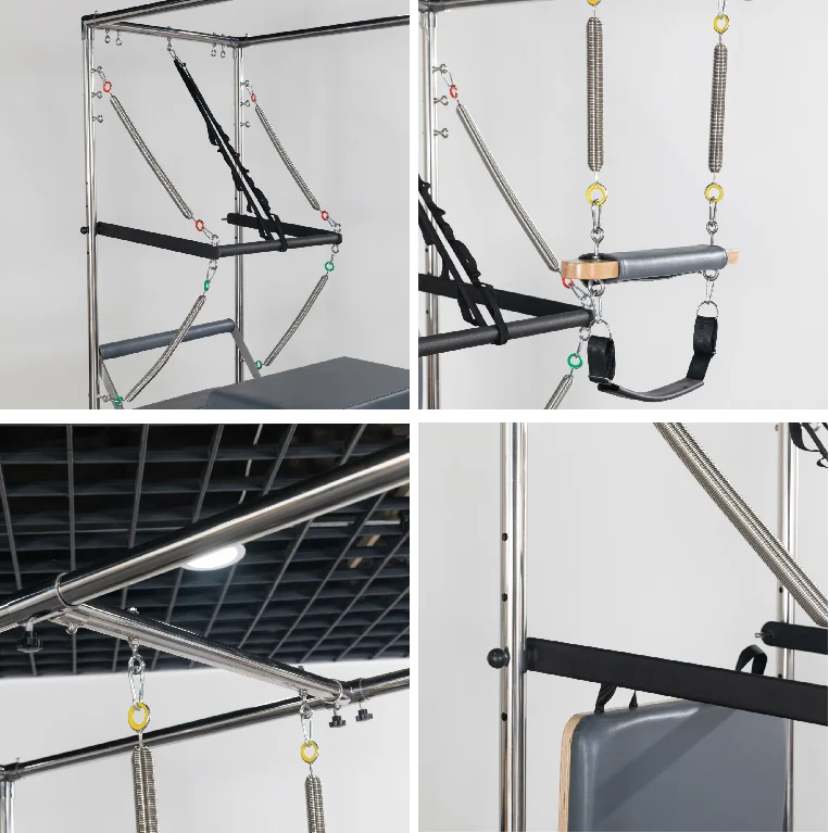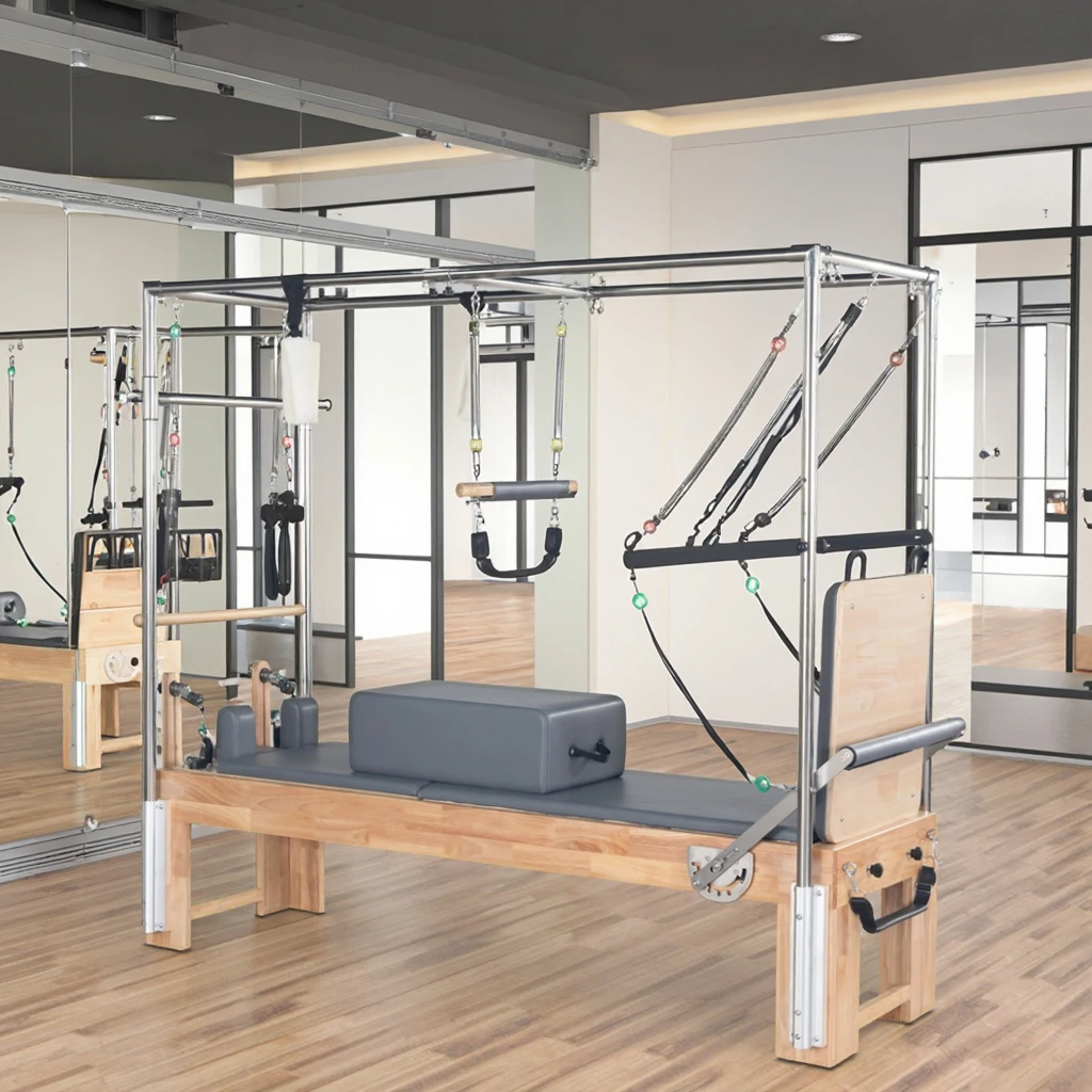 Professional home fitness equipment combining yoga, Pilates, and core training. Ideal for spine correction and sliding Cadillac bed exercises to enhance core strength and flexibility.