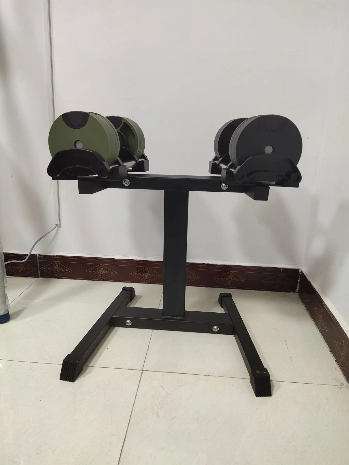 Adjustable Electroplated Dumbbell Set with Dumbbell Rack, ideal for home gyms. Electroplated finish ensures durability, while adjustable design allows weight customization. Includes a convenient rack for organized storage, perfect for strength training enthusiasts.