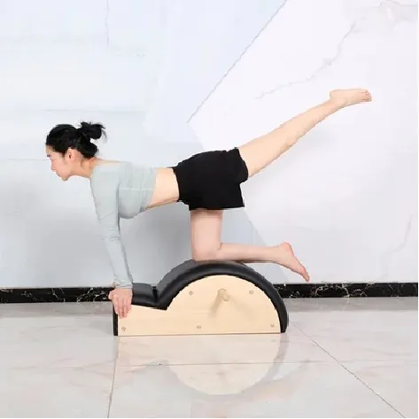 Professional wooden spine corrector designed for Pilates, yoga, and home gym training. Ideal for core strengthening, posture correction, and full-body fitness exercises in commercial or home settings.